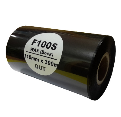 Термотрансферная лента F100S 110х300 ВОСК(WAX) стандарт в линейке красящих лент является самой не дорогой. Красящий слой на основе воска с небольшим добавлением смолы гарантирует хорошее качество печати и широко используется для печати по широкому спектру материалов:
