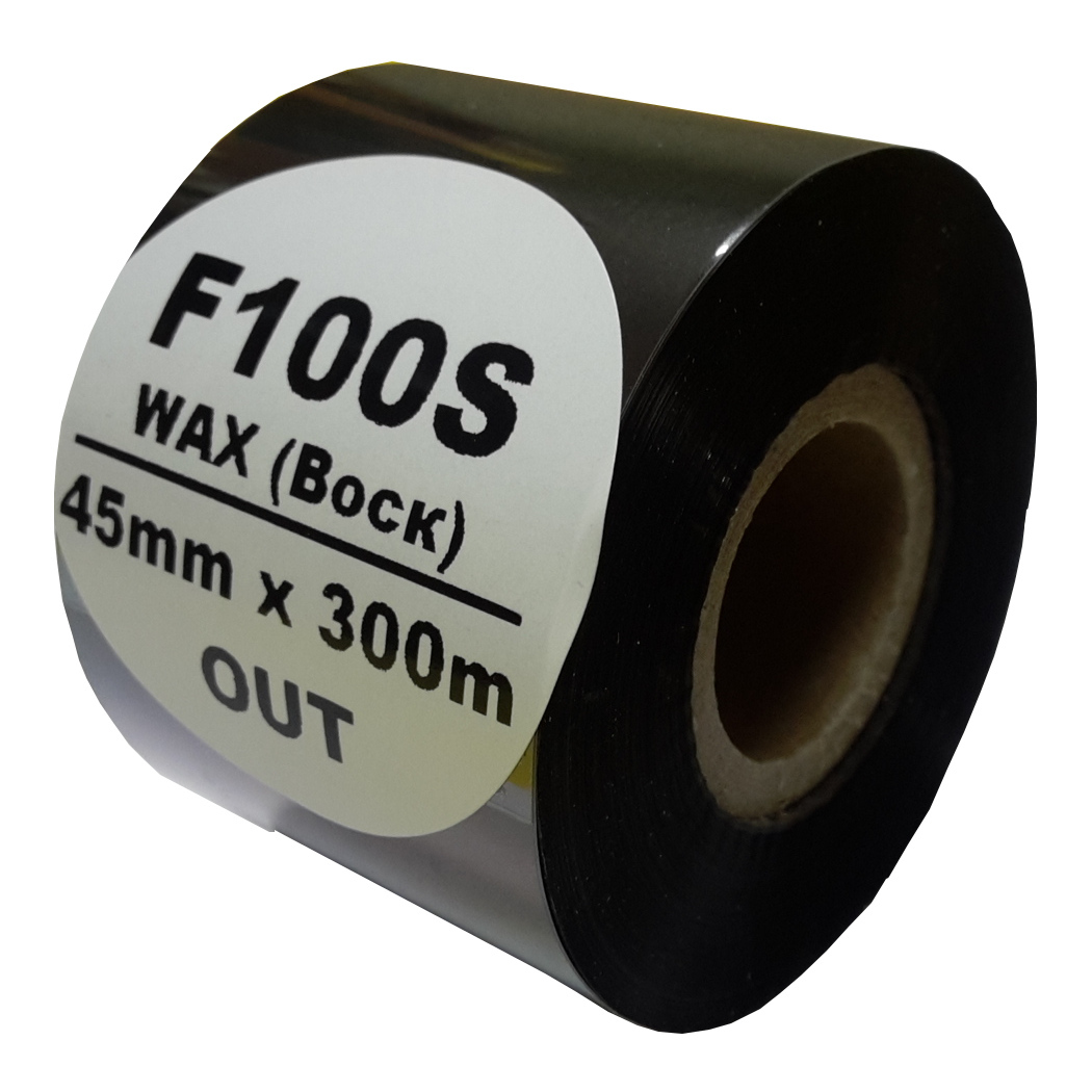 Термотрансферная лента F100S 45х300 ВОСК(WAX) стандарт в линейке красящих лент является самой не дорогой. Красящий слой на основе воска с небольшим добавлением смолы гарантирует хорошее качество печати и широко используется для печати по широкому спектру материалов: