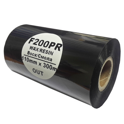 Термотрансферная лента F200P 110х300 ВОСК/СМОЛА (WAX/RESIN) премиум изготовлена на основе смеси ВОСКА и СМОЛЫ. Красящий слой в такой комбинации гарантирует хорошее качество печати и широко используется для печати по широкому спектру материалов: