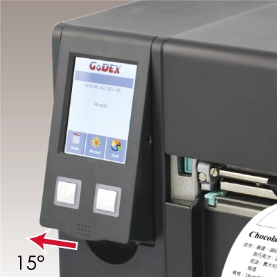 Godex HD830i+ имеет цветной  TFT LCD дисплей с кнопками навигации для быстрой настройки принтера непосредственно с дисплея. В принтере упрощена система регулировки печатающего механизма и замена протяжного резинового валика.  Отдельно выведена кнопка для быстрой калибровки датчиков.
