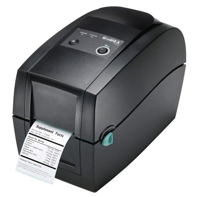 Godex RT200UES термотрансферный принтер с разрешением печати 203 dpi для печати любой информации на самоклеящихся этикетках всех видов (термо ЭКО, термо ТОП, полипропилен, полуглянец), текстильных лентах (нейлон, сатин, силикон), ювелирных бирках.